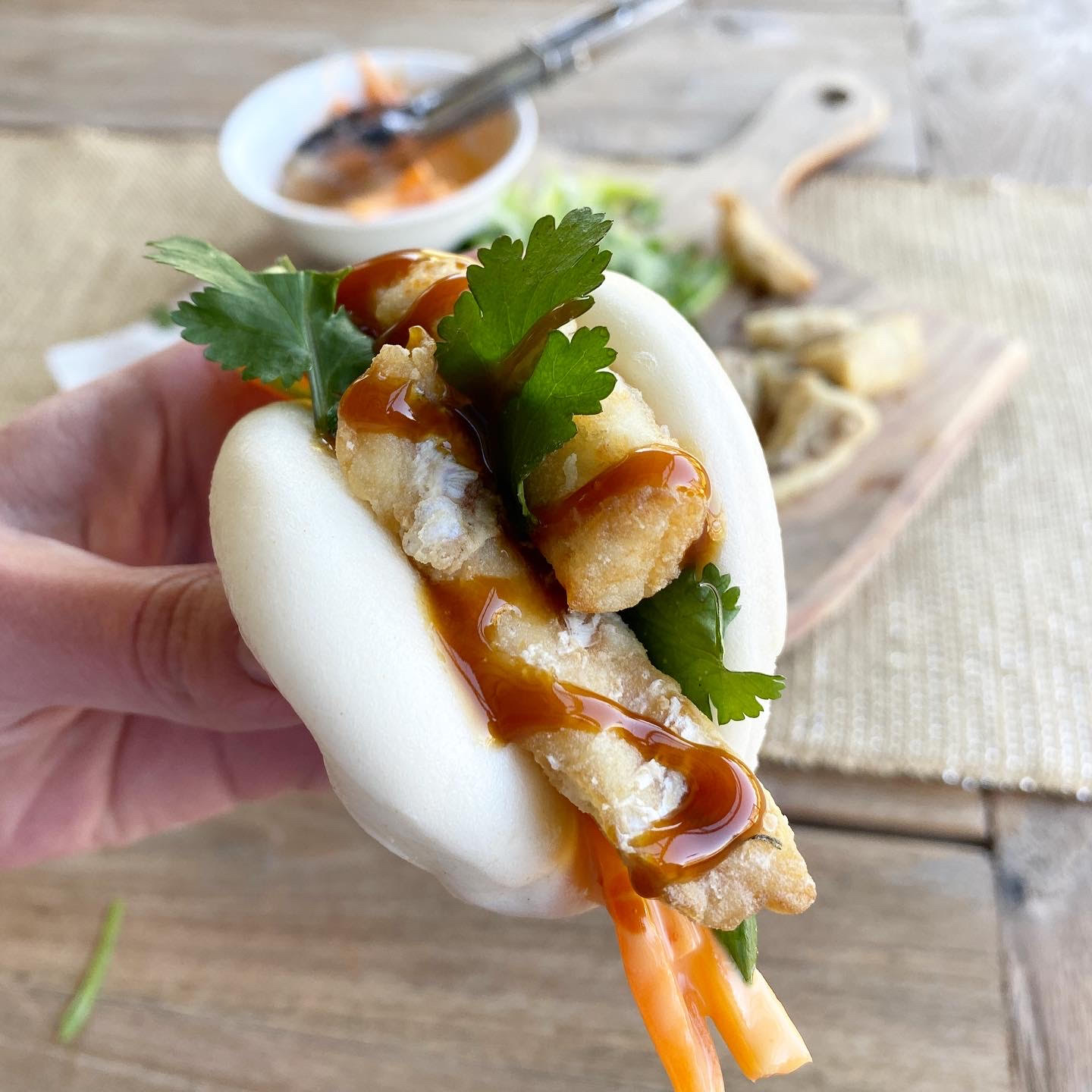 Crispy Snapper Bao Buns with Sriracha Slaw